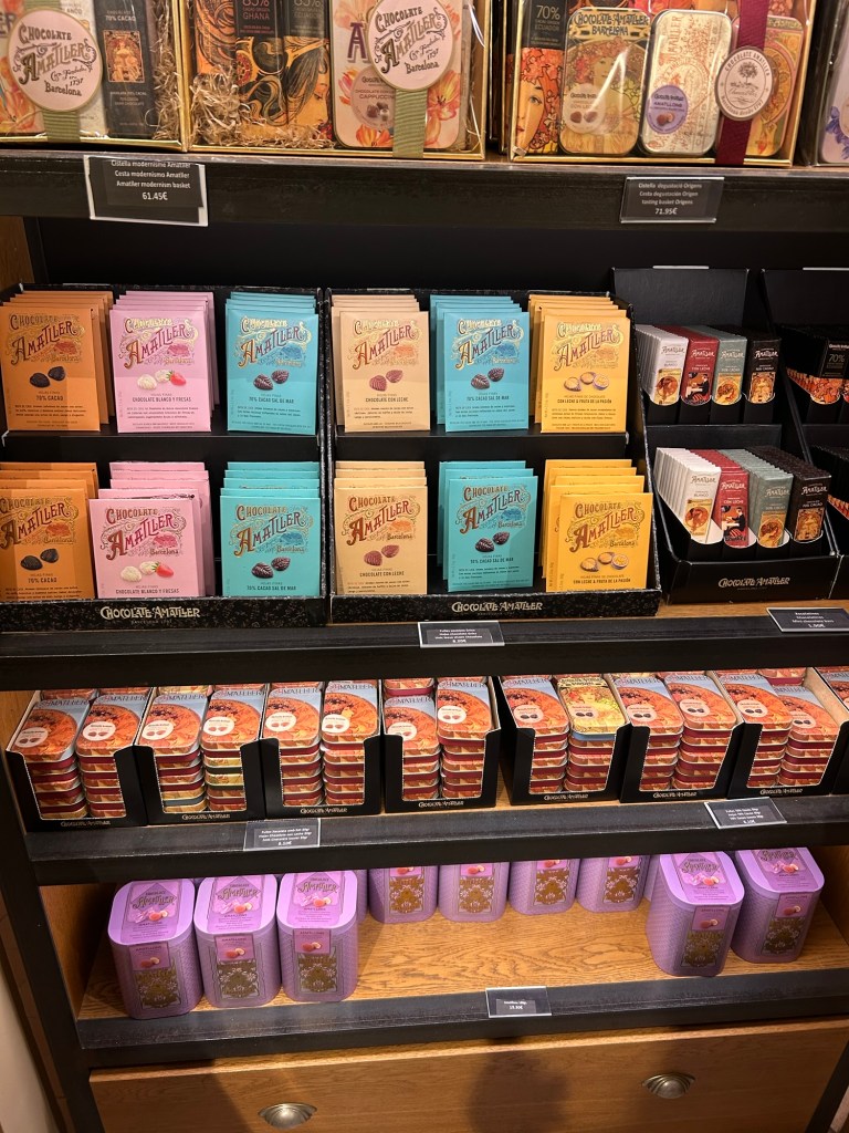 There was a market around the corner of where I live, so we decided to stroll around for a bit. After that we grabbed coffee at one of my favorite places: Syra Coffee, before walking to the city center. This day was all about bookstores, checking out Casa Mila & Casa Batlló and treating ourselves (and for gifts) with some chocolate at this lovely chocolate store: Chocolate Amatller (this one is located next to Casa Batlló inside Casa Museu Amatller, but there are more locations in Barcelona).